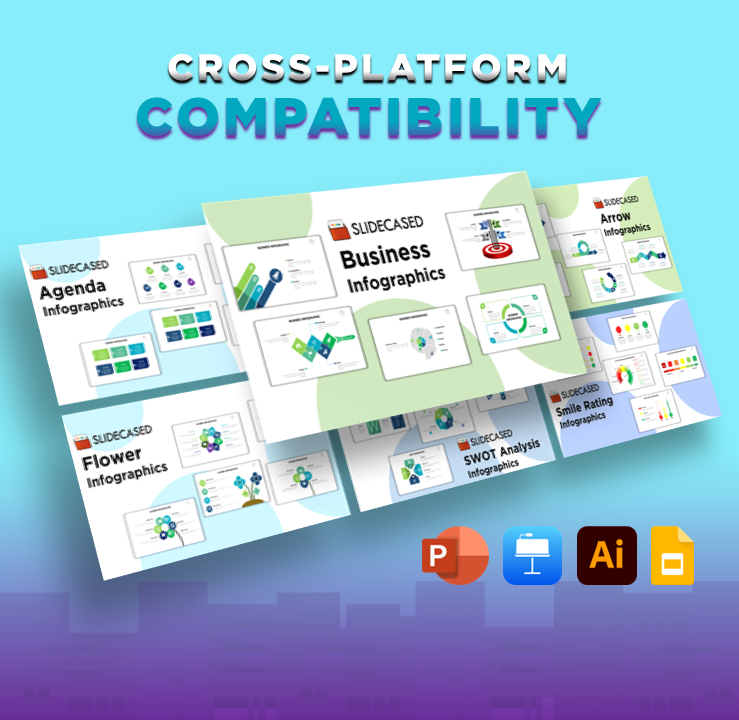 The Slidecased Infographics Collection is incredibly easy to use. Each template is fully customizable, so you can quickly and easily add your own data and branding. Plus, our templates are optimized for PowerPoint, so you can be sure that they will work seamlessly with your existing presentations.