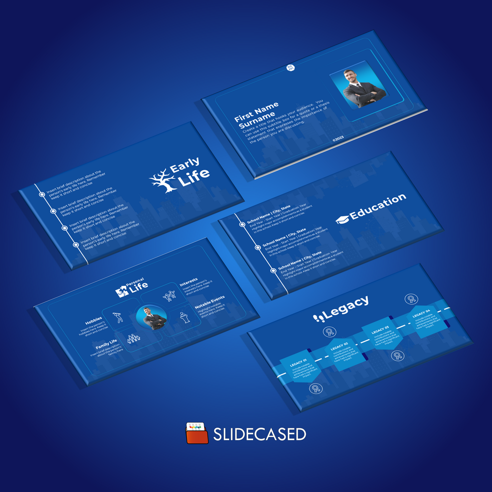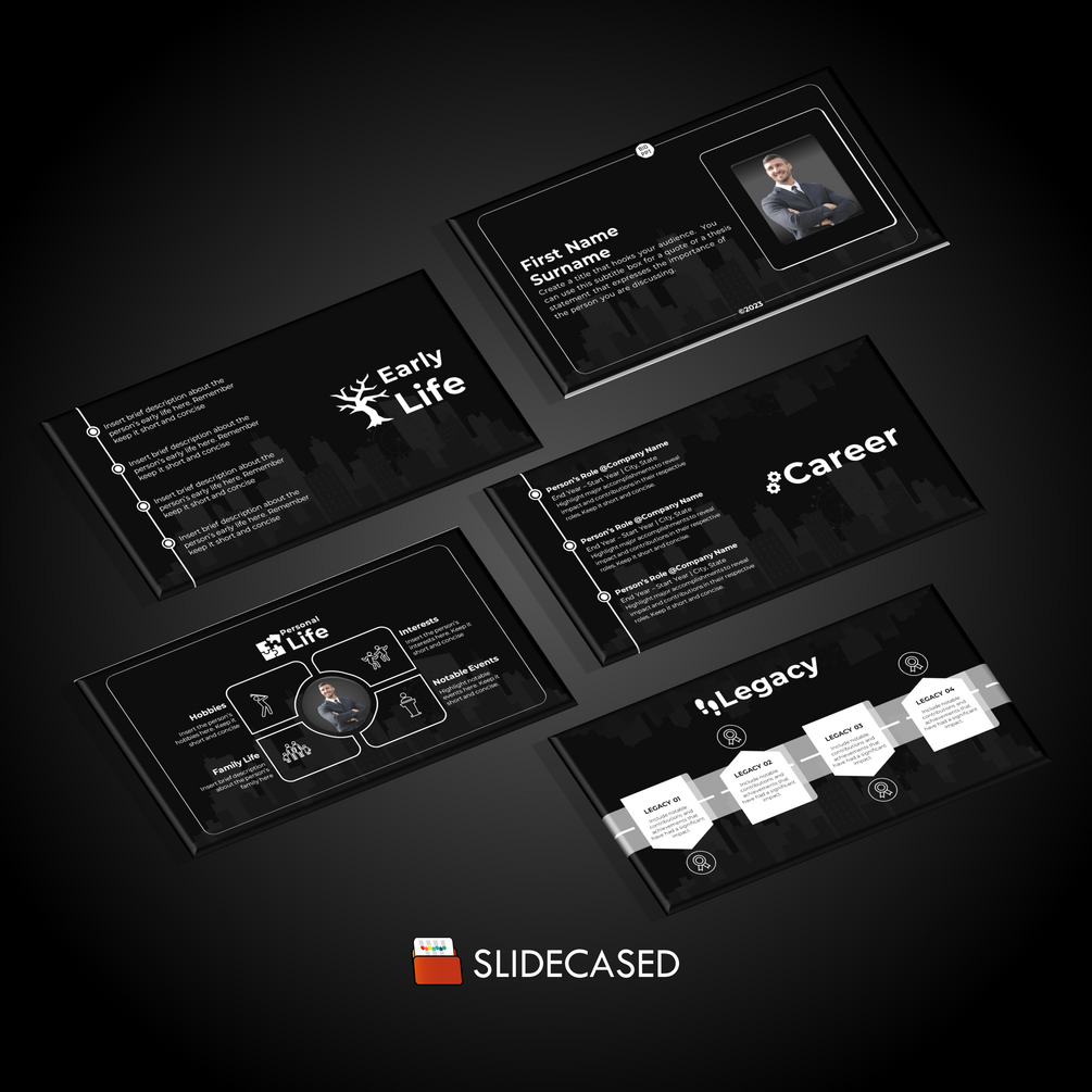 This Biography or Profile PowerPoint Template offers fully customizable slides that allow you to easily tailor each slide to your specific needs. With versatile layouts, including timelines, biographical information etc. you can present information in a visually appealing and easy-to-digest way. The user-friendly interface makes creating professional-looking presentations effortless, even if you have limited design skills. Our high-quality graphics and images will add visual interest to your presentation and help you tell a compelling story.
